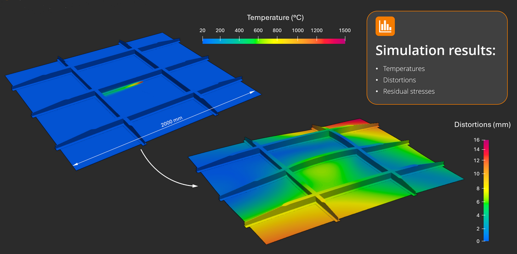 This approach applies to welding processes in metal structures where unwanted deformations are a concern. It allows for the virtual simulation of structural welding, regardless of complexity, to identify the optimal production strategy. By replacing costly physical testing on actual components, the simulation of thermal processes offers a cost-effective solution, resulting in substantial savings while ensuring accurate assessment and process optimization.